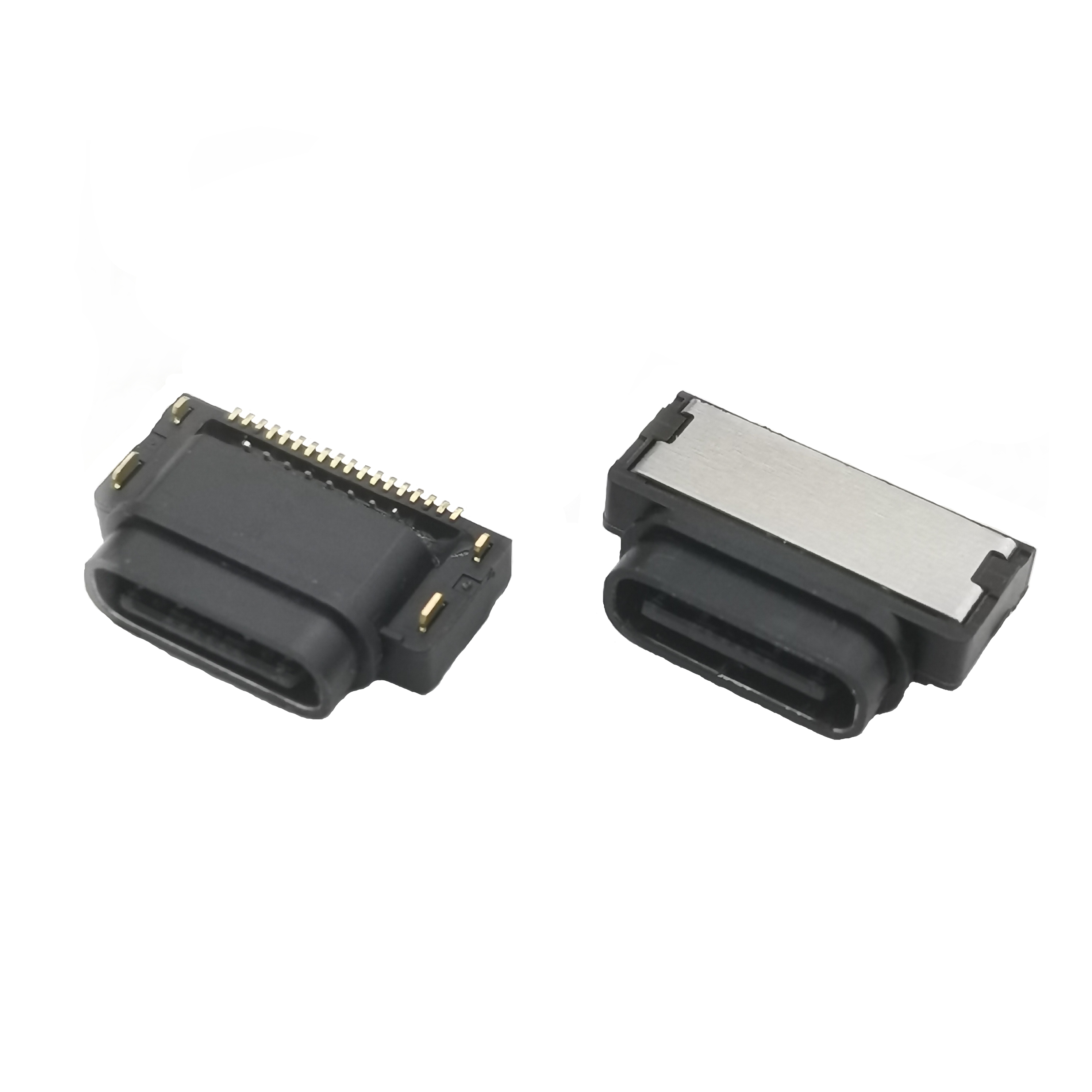 TYPE C 24P防水母座 板上三貼SMT 帶定位柱 長(zhǎng)度L=9.15MM CH=1.63MM 鋅合金外殼 防水IP67