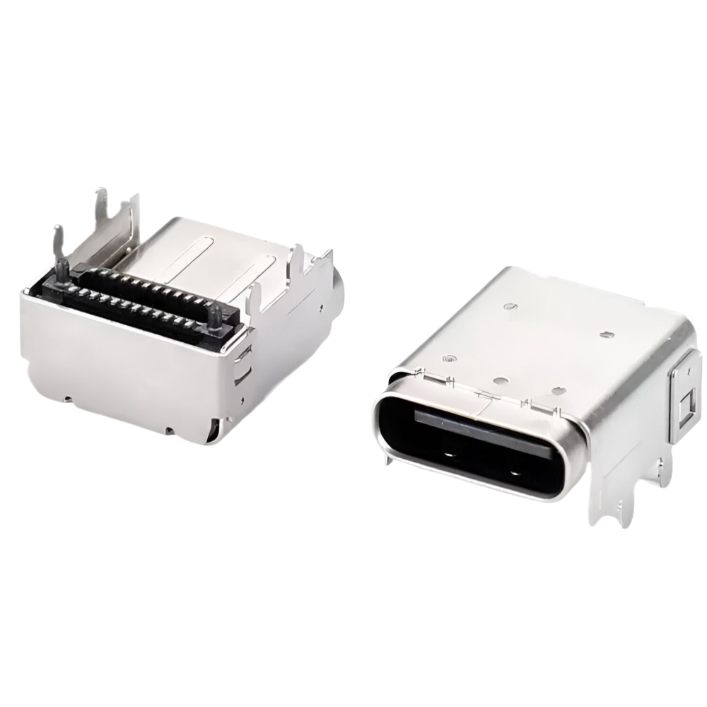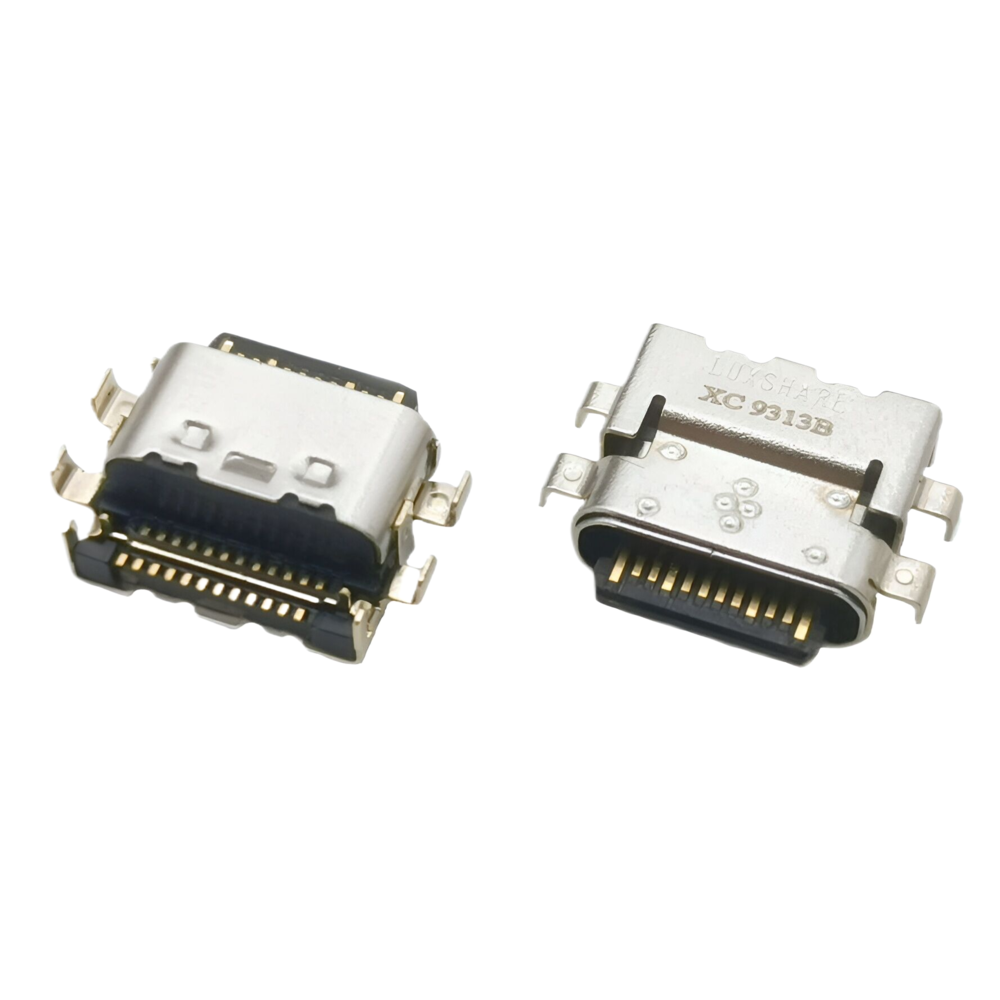 TYPE C 單排24P母座 沉板式免焊型連接器 帶雙耳螺絲孔